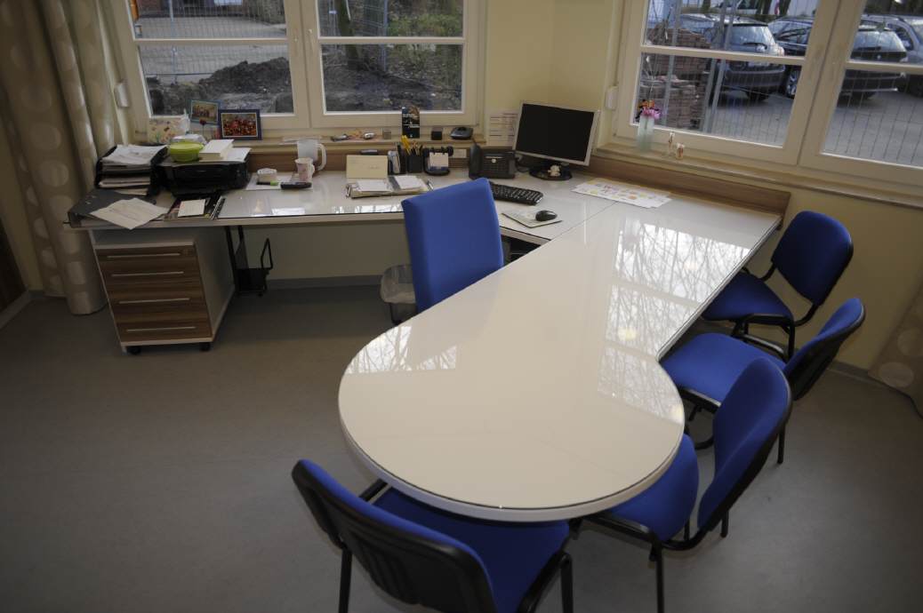 Sie sind hier: Startseite » DRABSCH-Möbelsystem » Büro- und Personalraum Büro- und Personalraum Schreibtisch mit Glasplatte Schreibtisch mit Ansatz für kleine Besprechnungen
