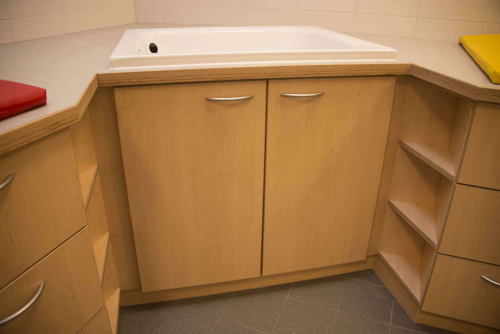 Sie sind hier: Startseite » DRABSCH-Möbelsystem » Pflegeeinheiten Pflegeeinheiten Die Wickelauflage hält was aus!! NEU!! Arbeitsplatte und Becken in einem "Guss" aus CORIAN ® Pflegeeinheiten