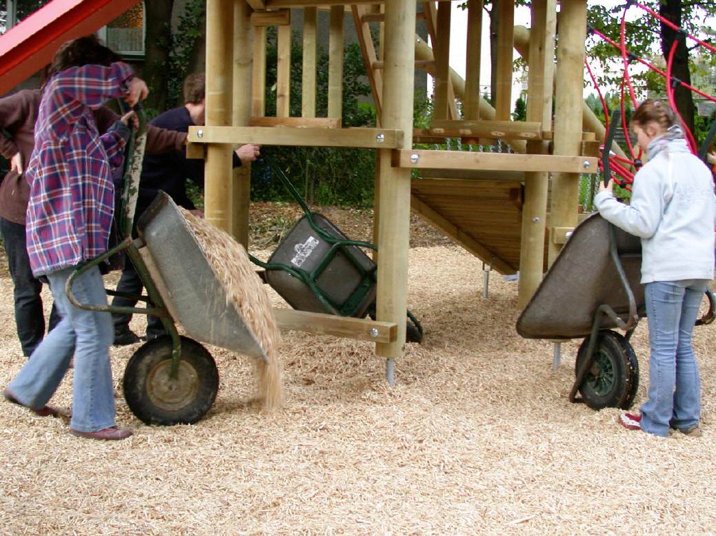 Sie sind hier: Startseite » Öcocolor » Lieferung » Einbau von Öcocolor Einbau von Öcocolor Einbringen von öcocolor-Spielplatzbelag in Eigenleistung mit Eltern, Schülern und Lehrern Auch Schulleiter packen an...